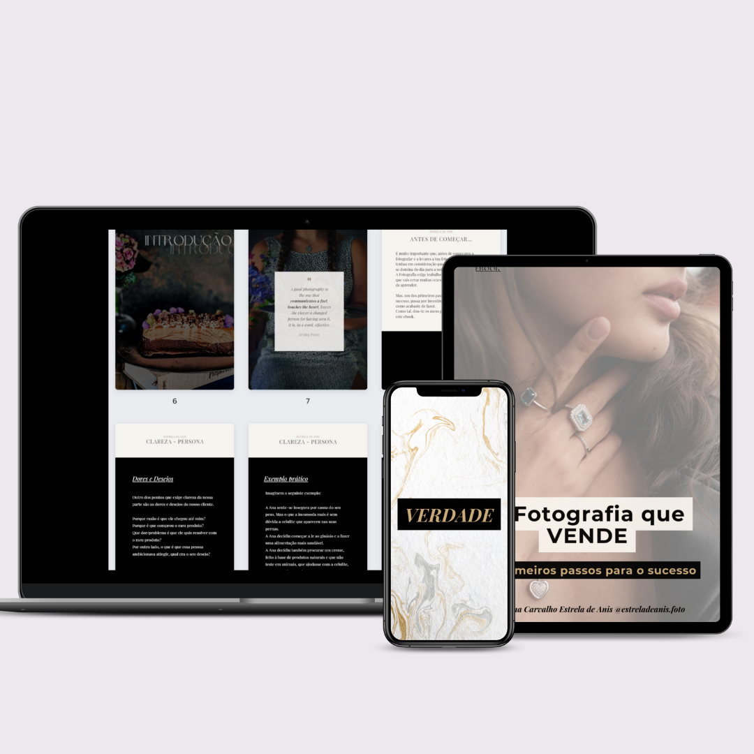 Neste ebook, com mais de 50 páginas de puro ouro, juntei tudo aquilo que precisas de saber para começares a criar as tuas próprias fotografias vendedoras. Vamos falar sobre como ter mais clareza na hora de fotografar, entender em que consiste a fotografia vendedora e que aspetos têm que estar presentes. São os primeiros passos para o sucesso.